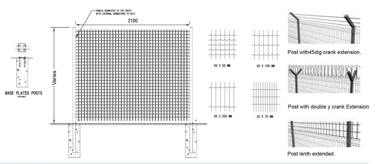 • In option of post welded on the base plate, post with double Y crank extension or post length extended.
